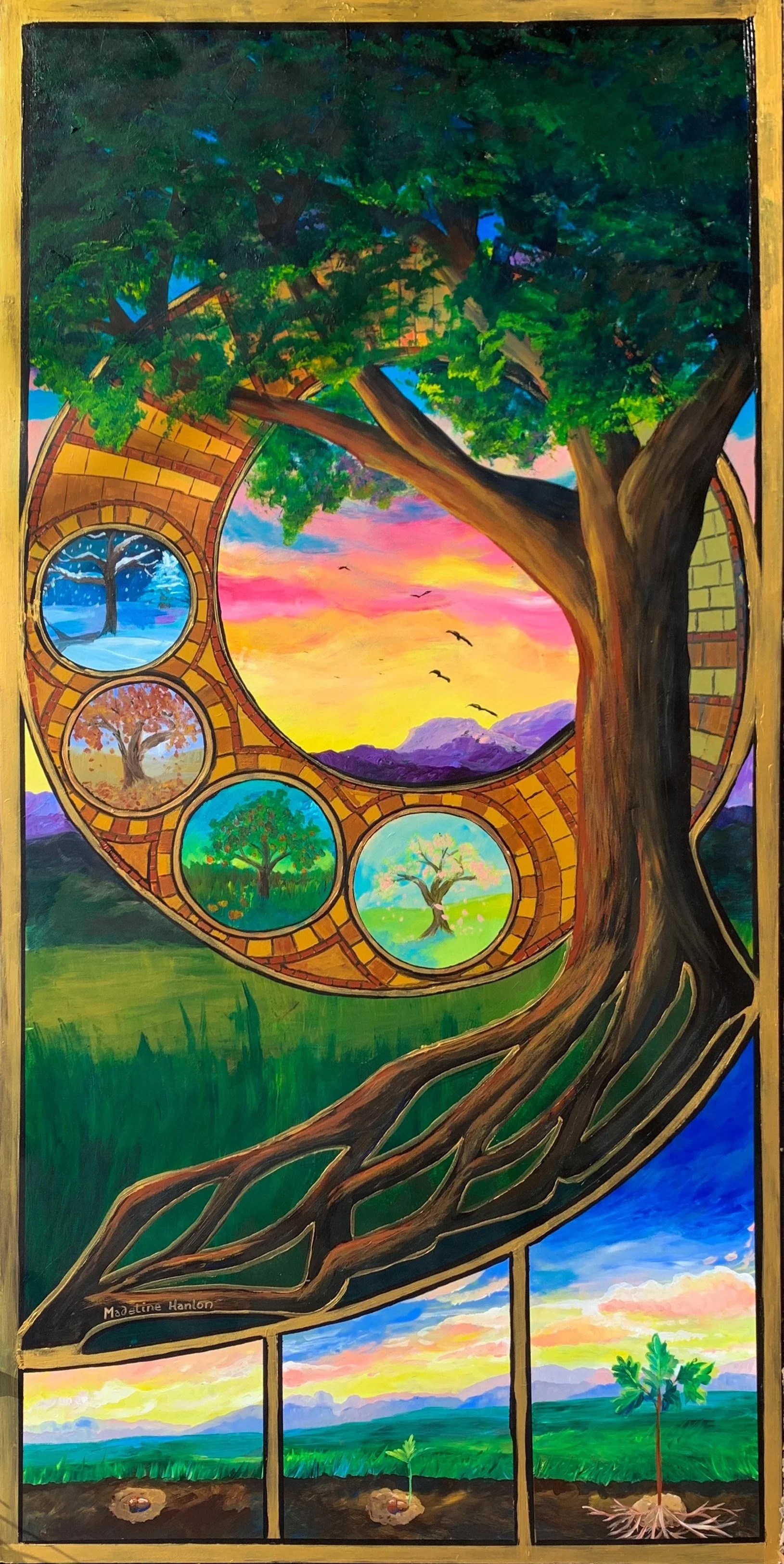 “What the Trees Know”4’x8’ Acrylic on PanelMounted in Downtown Escondido, California, as part of the Esco Alley Art Project. Seasons come and go, that’s what the trees know. From life to death and back again, the cycle never ends. The trees do not worry, they go on.